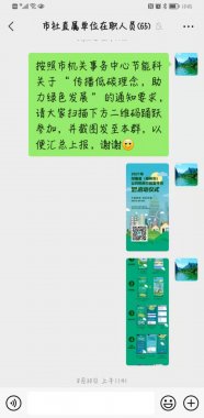 在線上,組織直屬系統全體干部職工參與“2021年河南省公共機構節能宣傳月線上啟動儀式”活動,辦公室將參與活動二維碼發至微信工作群,廣大干部職工通過掃碼參與倡議簽名和節能環保知識問答等活動。